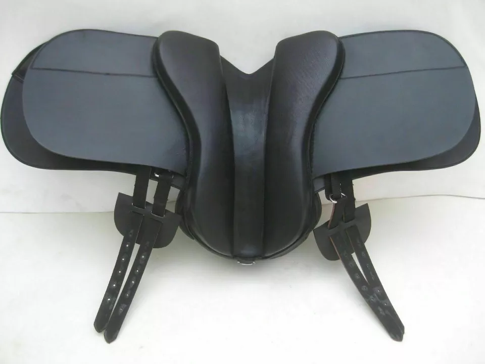 This saddle looks like a normal saddle but has the benefit of no tree .This a saddle built around a soft pad instead of a traditional wooden tree.